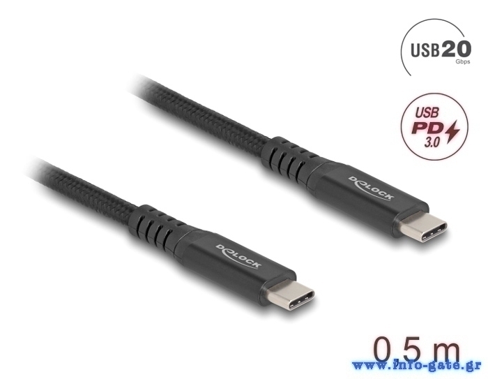 DELOCK καλώδιο USB-C 80023, 100W, 20 Gbps, 0.5m, USB4, E-Marker, μαύρο
