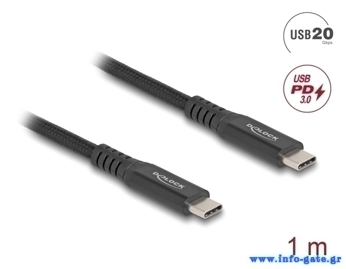 DELOCK καλώδιο USB-C 80024, 100W, 20 Gbps, 1m, USB4, E-Marker, μαύρο