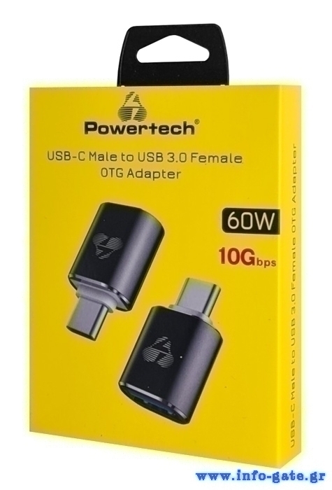 POWERTECH αντάπτορας USB-C σε USB 3.0 PTR-0148, 10 Gbps, 60W, γκρι