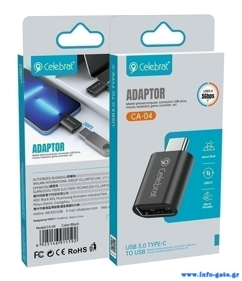 CELEBRAT αντάπτορας USB-C σε USB 3.0 CA-04, 5Gbps, μαύρος