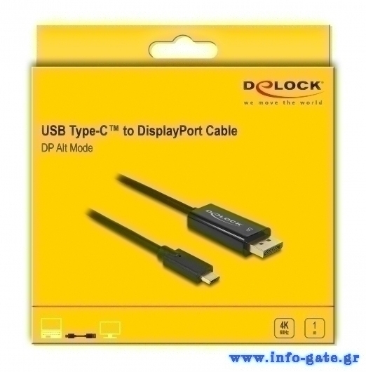 DELOCK καλώδιο USB-C σε DisplayPort 85255, DP Alt Mode, 4K, 1m, μαύρο