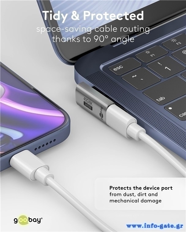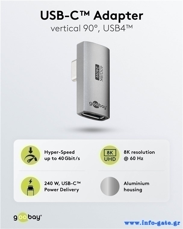 GOOBAY αντάπτορας USB-C 74443, γωνιακός 90°, USB4, 240W, 40Gbps, 8K, γκρι