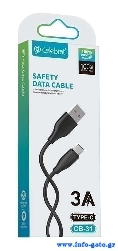 CELEBRAT καλώδιο USB-C σε USB CB-31A, 3A, 480Mbps, 1m, μαύρο