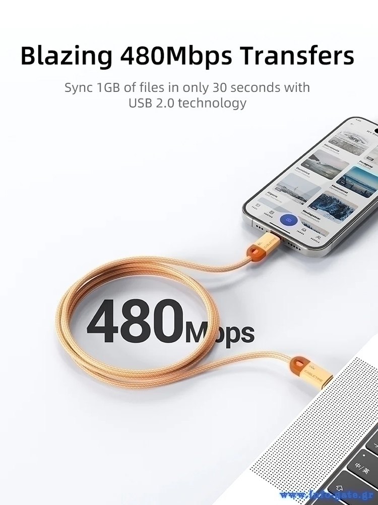-υφασμάτινο (braided) καλώδιο για μεγαλύτερη αντοχή