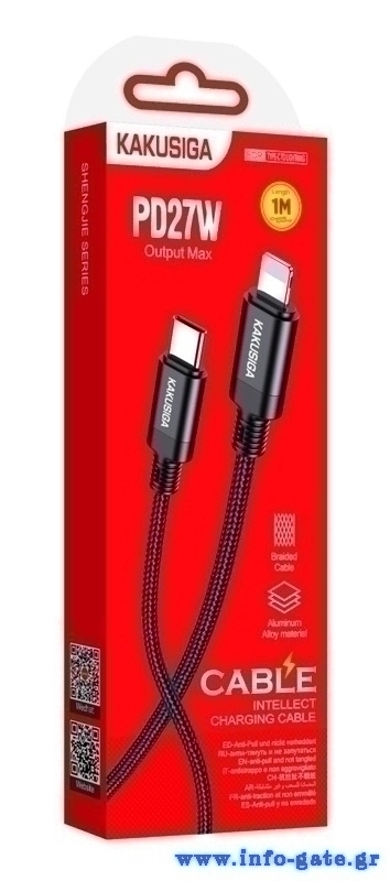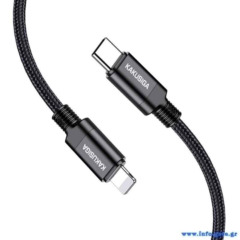 KAKUSIGA καλώδιο Lightning σε USB-C KSC-970, 27W, 480Mbps, 1m, μαύρο