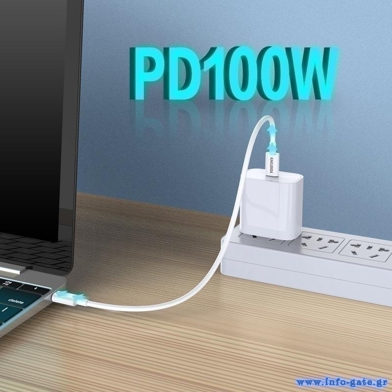KAKUSIGA καλώδιο USB-C σε USB-C KSC-653, 100W, 480Mbps, 25cm, λευκό