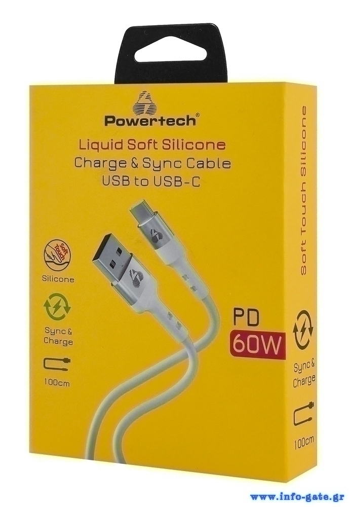 POWERTECH καλώδιο USB-C σε USB PTR-0162, σιλικόνης, 60W, 480Mbps, 1m, λευκό