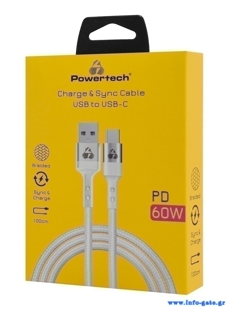 Καλώδιο φόρτισης και μεταφοράς δεδομένων USB-C σε USB της Powertech.
