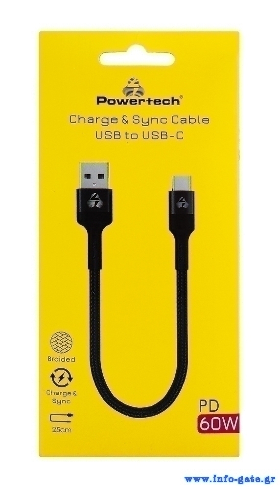 POWERTECH καλώδιο USB-C σε USB PTR-0166, 60W, 480Mbps, 25cm, μαύρο