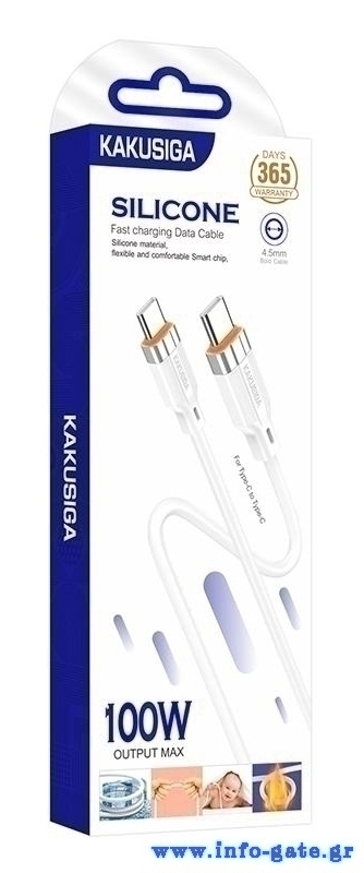 KAKUSIGA καλώδιο USB-C σε USB-C KSC-995, σιλικόνης, 100W, 480Mbps, 1m, λευκό