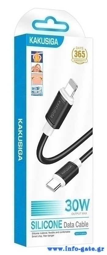 KAKUSIGA καλώδιο Lightning σε USB-C KSC-998, σιλικόνης, 30W, 480Mbps, 1m, μαύρο