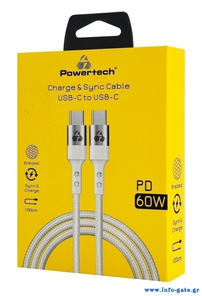 POWERTECH καλώδιο USB-C σε USB-C PTR-0167, PD 60W, copper, 1m, λευκό