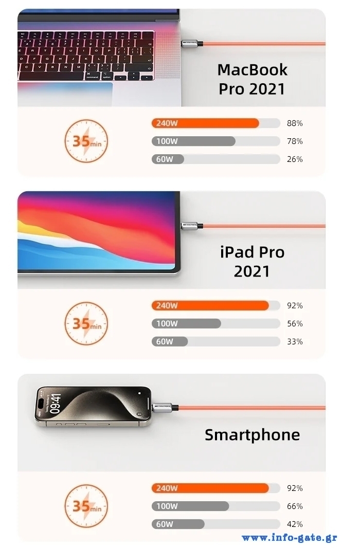 -γρήγορη φόρτιση με απόδοση έως 240W