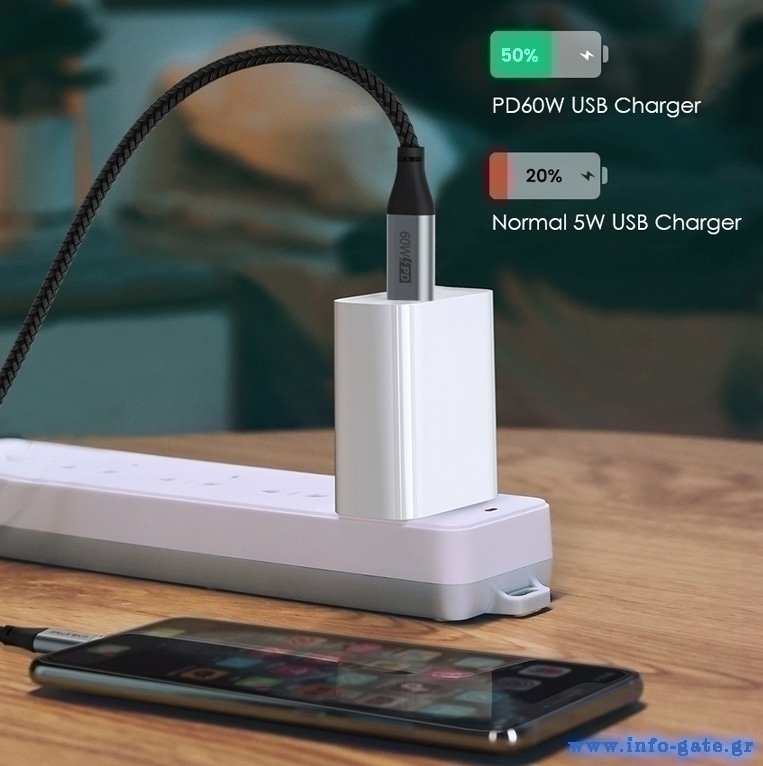 -γρήγορη φόρτιση με απόδοση έως 60W