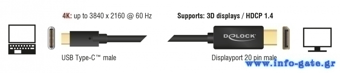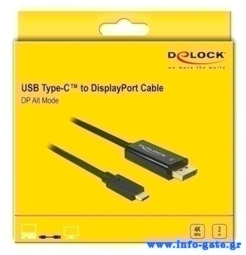 DELOCK καλώδιο USB-C σε DisplayPort 85256, DP Alt Mode, 4K, 2m, μαύρο