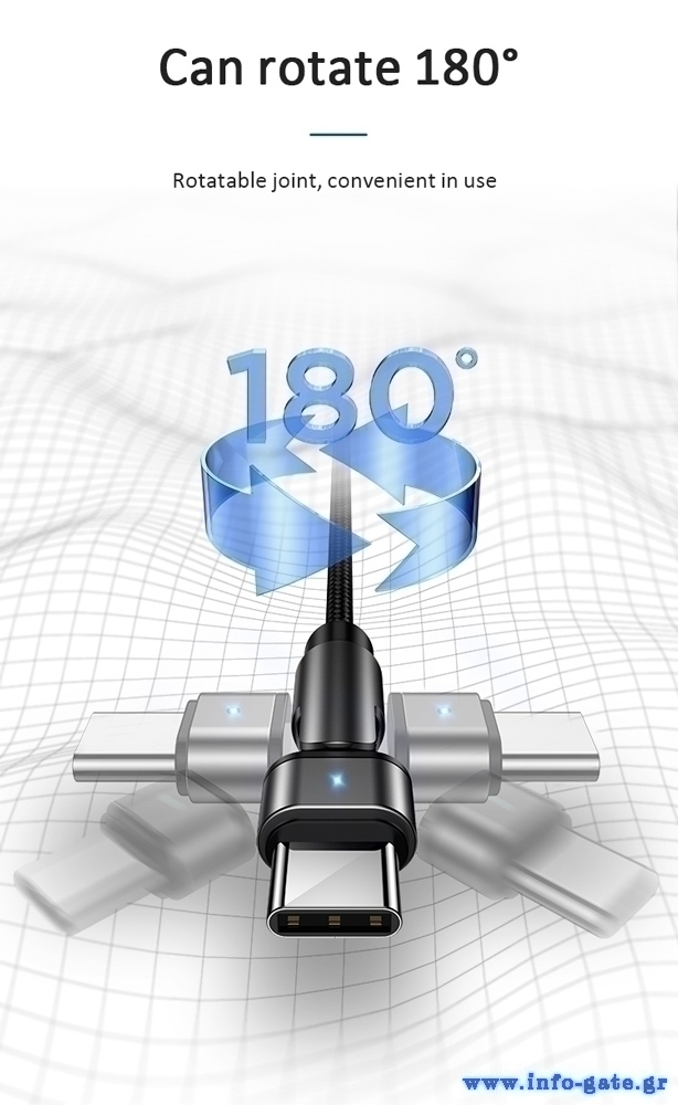 Καλώδιο φόρτισης USB-C σε USB της Usams, με περιστρεφόμενο βύσμα 180°.