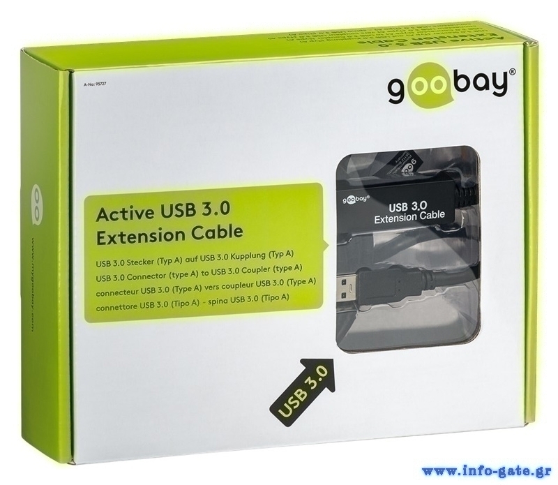 GOOBAY καλώδιο προέκτασης USB 3.0 95727, active, 5Gbps, 5m, μαύρο