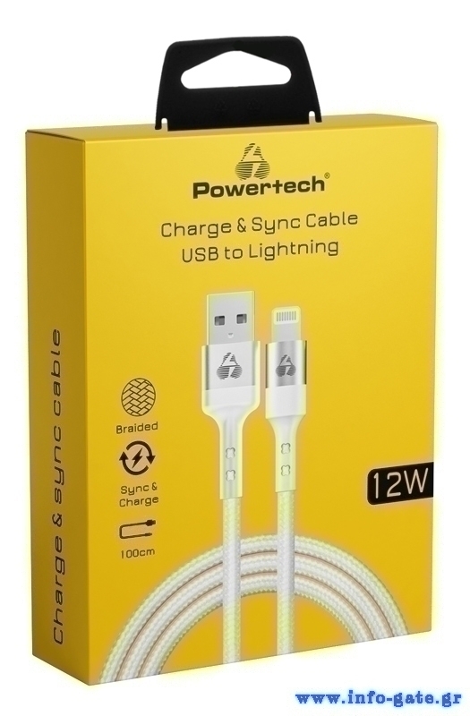 POWERTECH καλώδιο USB σε Lightning PTR-0126, 12W, copper, 1m, λευκό
