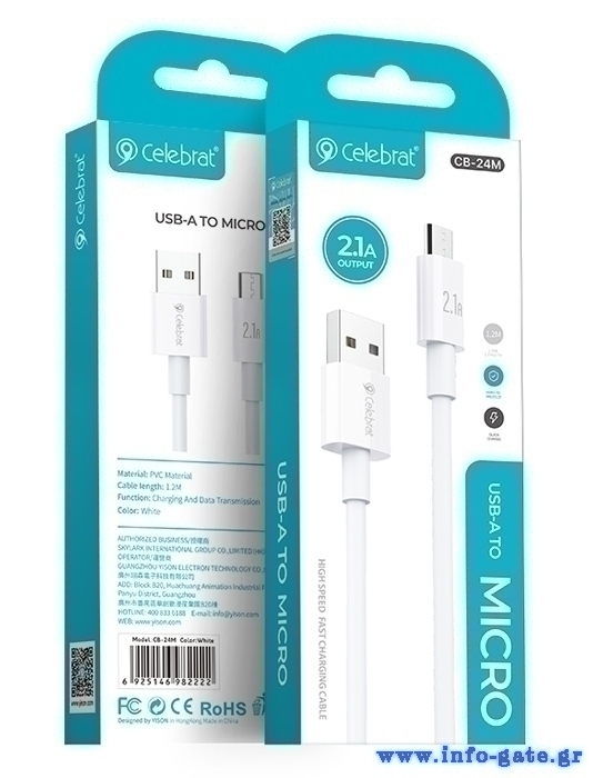 CELEBRAT καλώδιο Micro USB σε USB CB-24M, 2.1A, 1.2m, λευκό