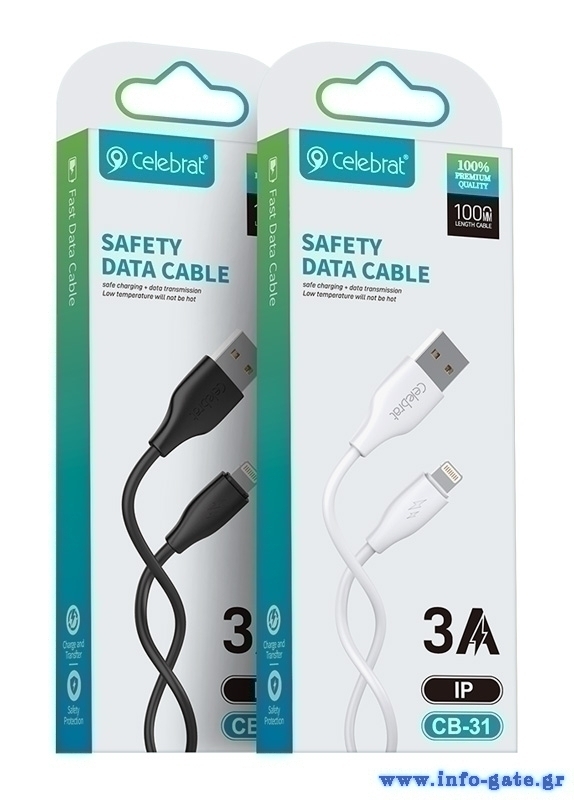 CELEBRAT καλώδιο Lightning σε USB CB-31, 3A, 480Mbps, 1m, μαύρο