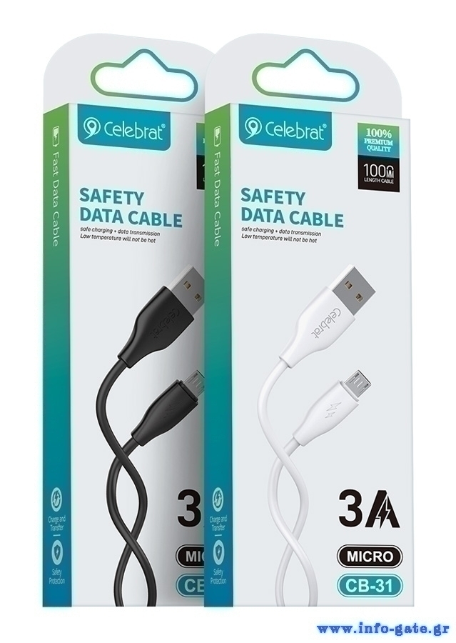 CELEBRAT καλώδιο micro USB σε USB CB-31, 3A, 480Mbps, 1m, λευκό