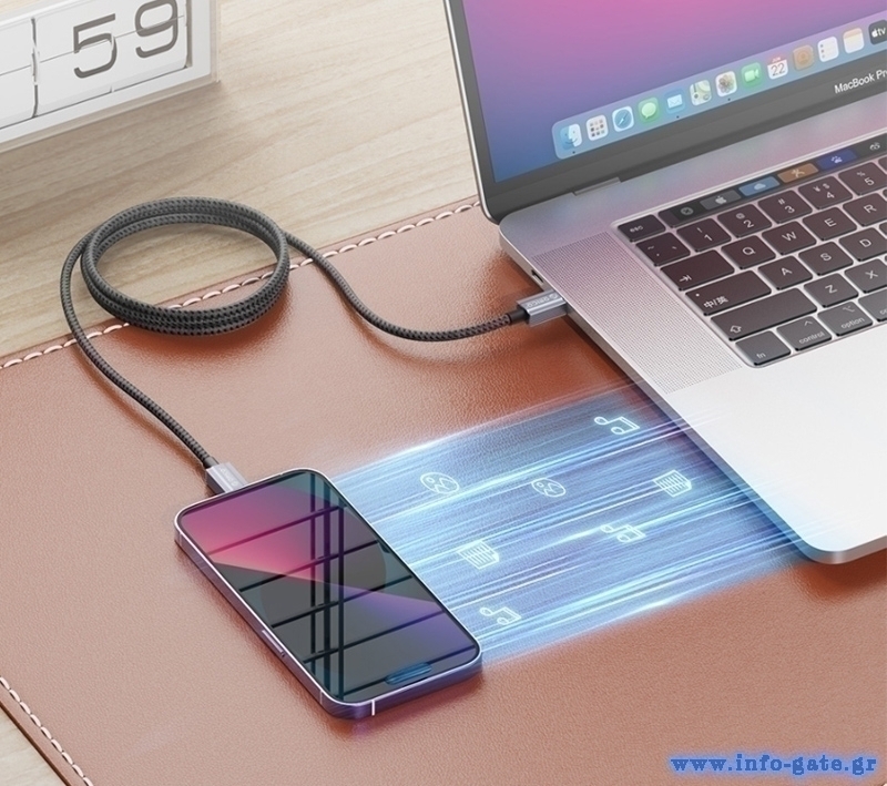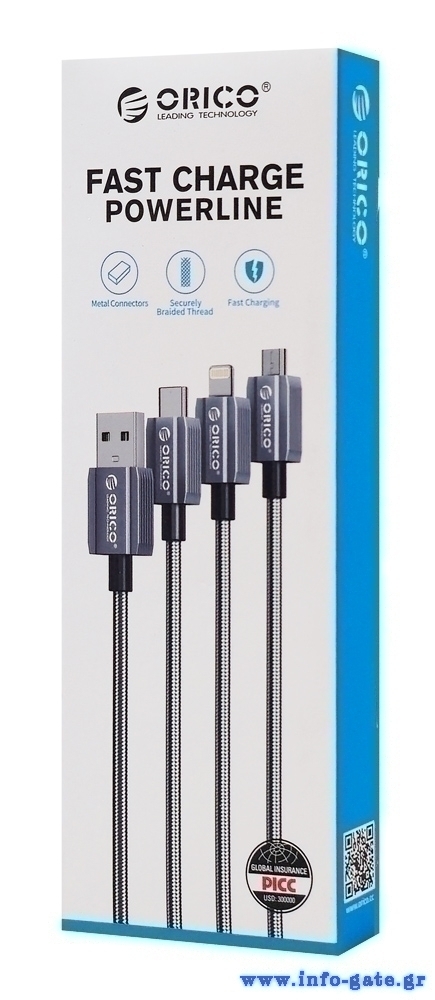 Καλώδιο φόρτισης και μεταφοράς δεδομένων Lightning σε USB της ORICO. Υποστηρίζει φόρτιση με απόδοση έως 2.4A και μεταφορά δεδομένων με ταχύτητα έως 480Mbps.