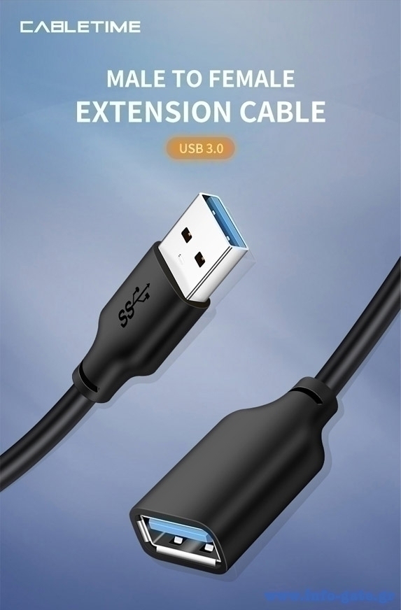 CABLETIME καλώδιο προέκτασης USB CT-AMAFN, 5Gbps, 2m, μαύρο