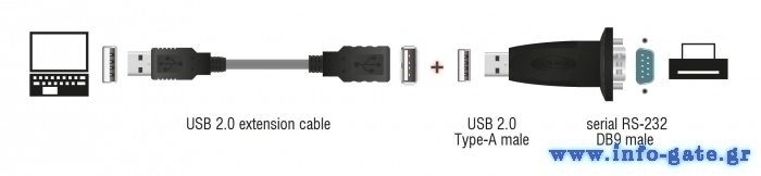 Βύσματα αντάπτορα: USB 2.0 αρσενικό σε serial RS-232 DB9 με βίδες αρσενικό