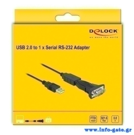 Αυτός ο αντάπτορας USB σε σειριακό της Delock παρέχει μια θύρα RS-232 για συστήματα POS, εκτυπωτές, μόντεμ, συσκευές IoT κτλ.