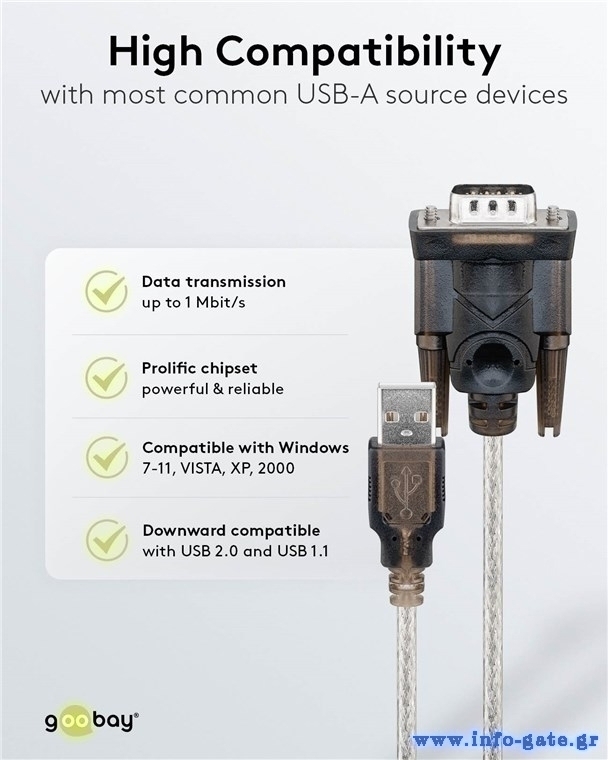 Καλώδιο USB σε RS-232 από την Goobay, κατάλληλο για την σύνδεση σειριακών συσκευών σε θύρα USB.