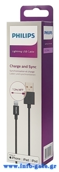 PHILIPS καλώδιο USB σε Lightning DLC3104V-00, 2.4Α 12W, 1.2m, μαύρο