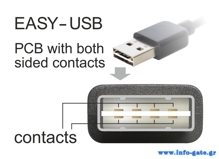 Καλώδιο με Easy USB τεχνολογία και στα δύο βύσματα, η οποία επιτρέπει στο βύσμα να συνδεθεί και από τις 2 πλευρές.