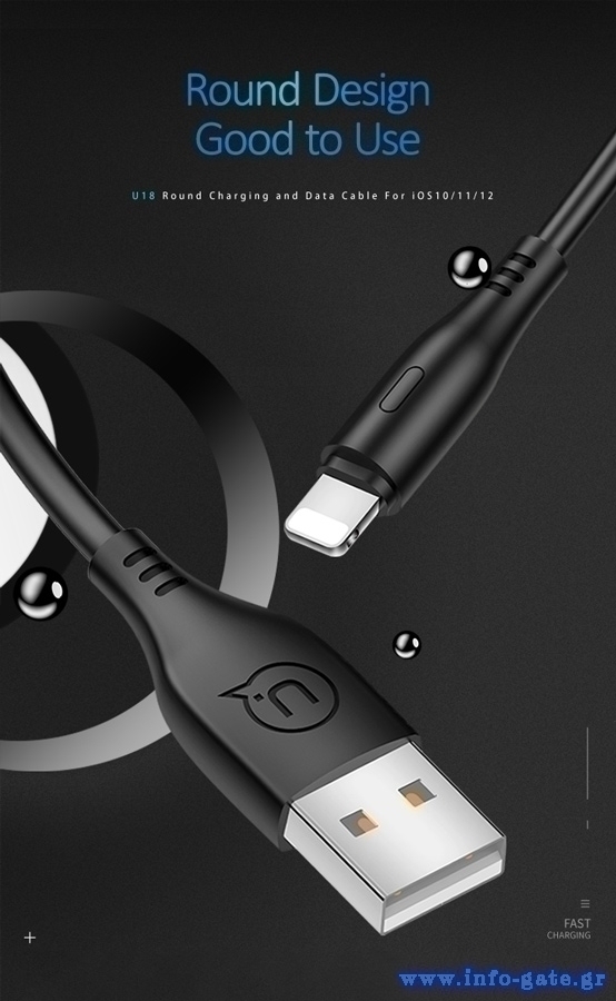 Καλώδιο φόρτισης και μεταφοράς δεδομένων Lightning σε USB της Usams.