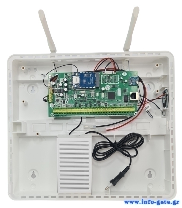 -υποστήριξη 8x ασύρματων χειριστηρίων, 4x ασύρματων σειρήνων αμφίδρομης επικοινωνίας, 8x πληκτρολόγιων, 1x εξοδος για ρελέ