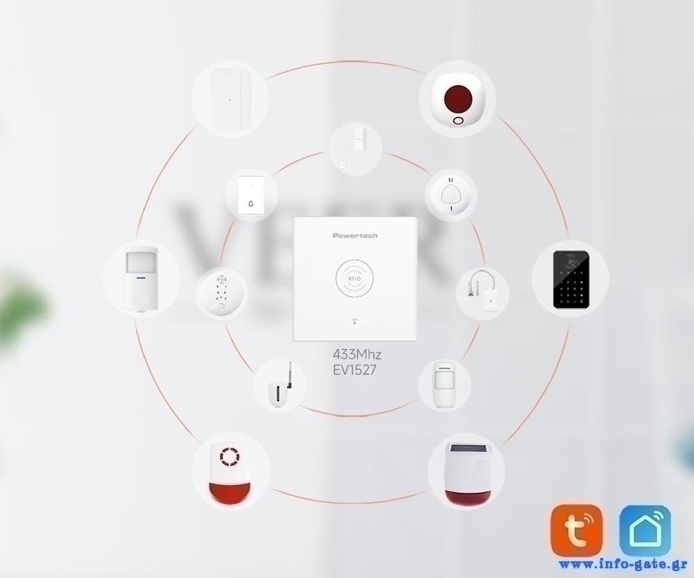 POWERTECH smart ασύρματο σύστημα συναγερμού PT-1285, RFID, WiFi, TUYA