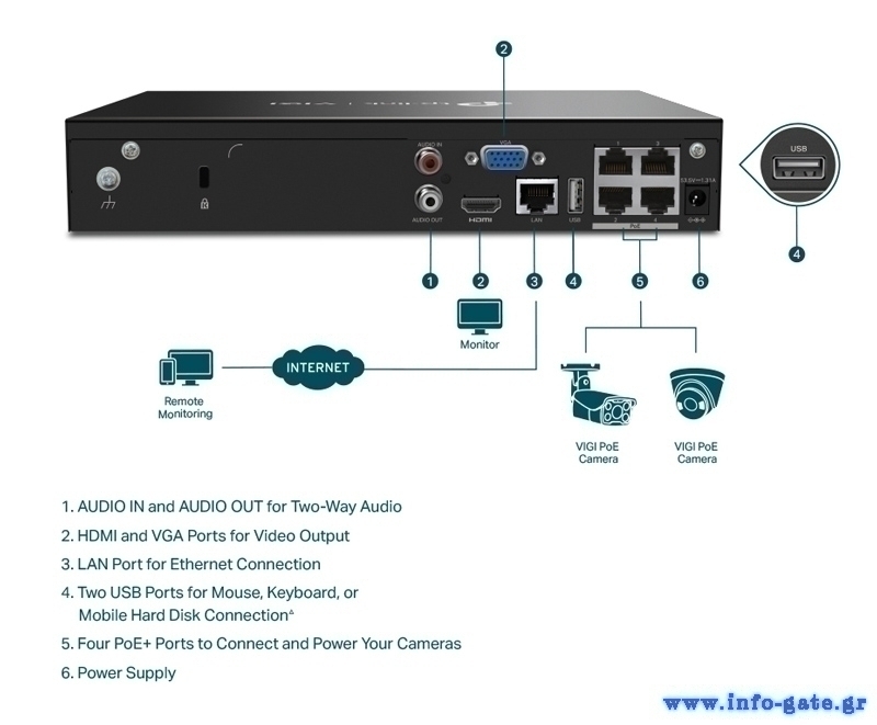 Τα καταγραφικά της σειράς VIGI από την TP-LINK συνδέονται με το σύστημα καμερών σας, επιτρέποντας της παρακολούθηση (live & playback) και την αποθήκευση των βίντεο που καταγράφονται.
