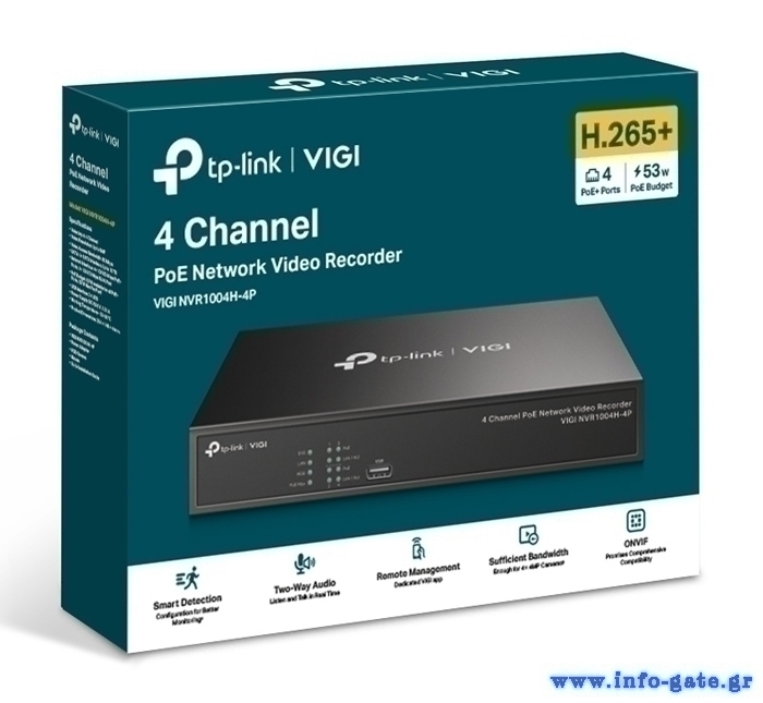 TP-LINK NVR καταγραφικό VIGI NVR1004H-4P, 8MP, 4 κανάλια PoE, Ver. 1.0