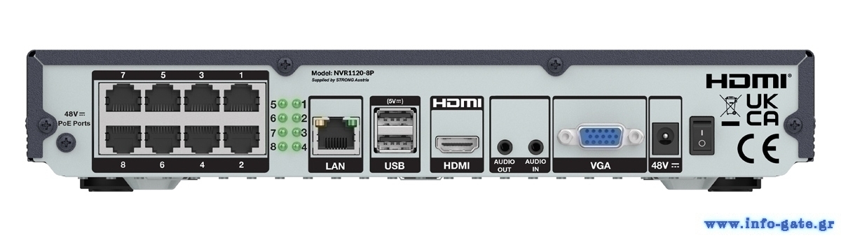 NVR καταγραφικό της STRONG, με υποστήριξη έως 8 PoE καναλιών και ανάλυση καταγραφής έως 4K.