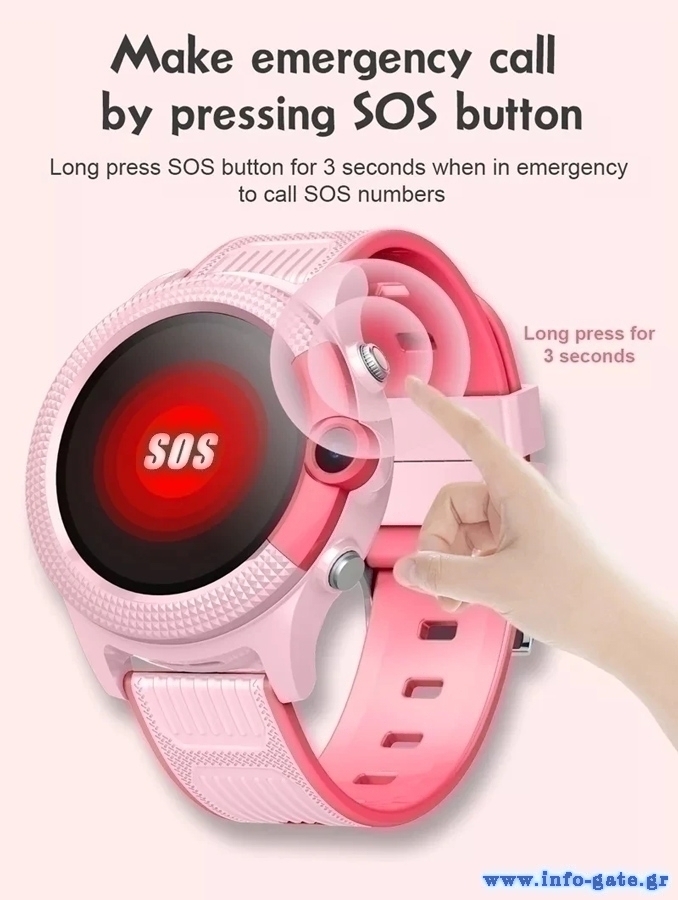 Εξοπλίζεται με έγχρωμη οθόνη αφής 1.28" και κάμερα 0.3 MP. Υποστηρίζει τηλεφωνικές κλήσεις ή βιντεοκλήσεις με δίκτυο 4G (με τη χρήση Nano SIM κάρτας) και διαθέτει και κουμπί για κλήσεις SOS σε περιπτώσεις έκτακτης ανάγκης.