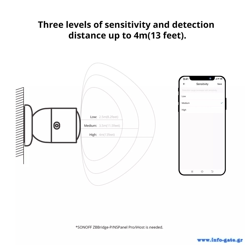 Smart ανιχνευτής κίνησης της Sonoff, σχεδιασμένος να ανιχνεύει την κίνηση του ανθρώπινου σώματος.