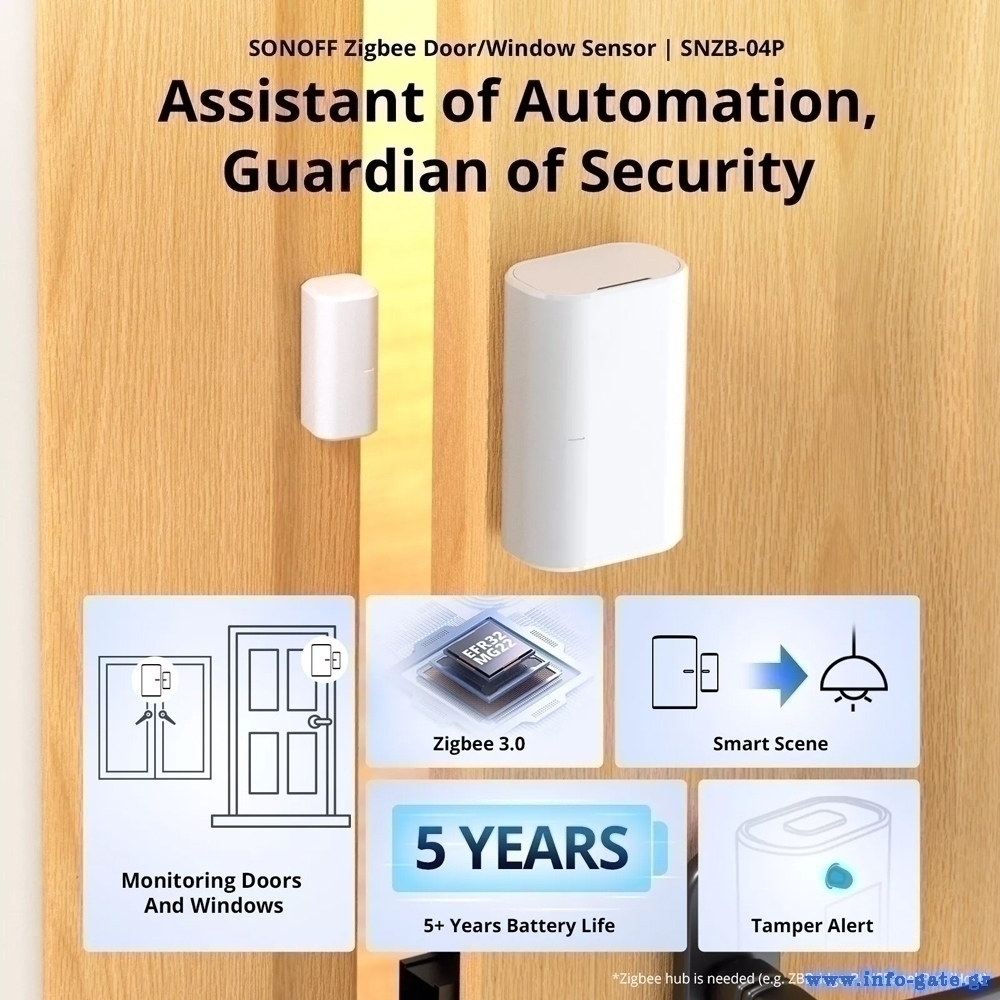 Σημείωση: Για την λειτουργία του απαιτείται ZigBee hub (π.χ. ZBBridge-P, NSPanel Pro).