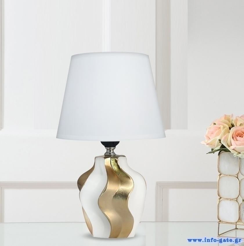 POWERTECH επιτραπέζιο φωτιστικό HLL-0135, E27 κεραμική βάση, λευκό/χρυσό