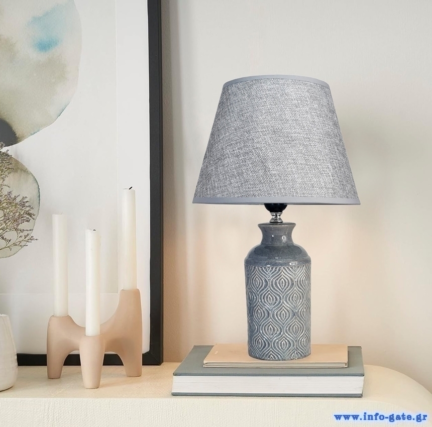 POWERTECH επιτραπέζιο φωτιστικό HLL-0142, E27, κεραμική βάση, γκρι