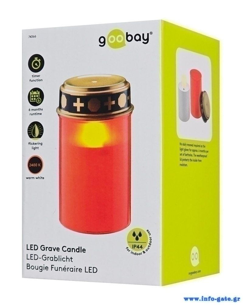 GOOBAY LED φωτιστικό κερί αφιέρωσης 74366, 2400K, IP44, κόκκινο