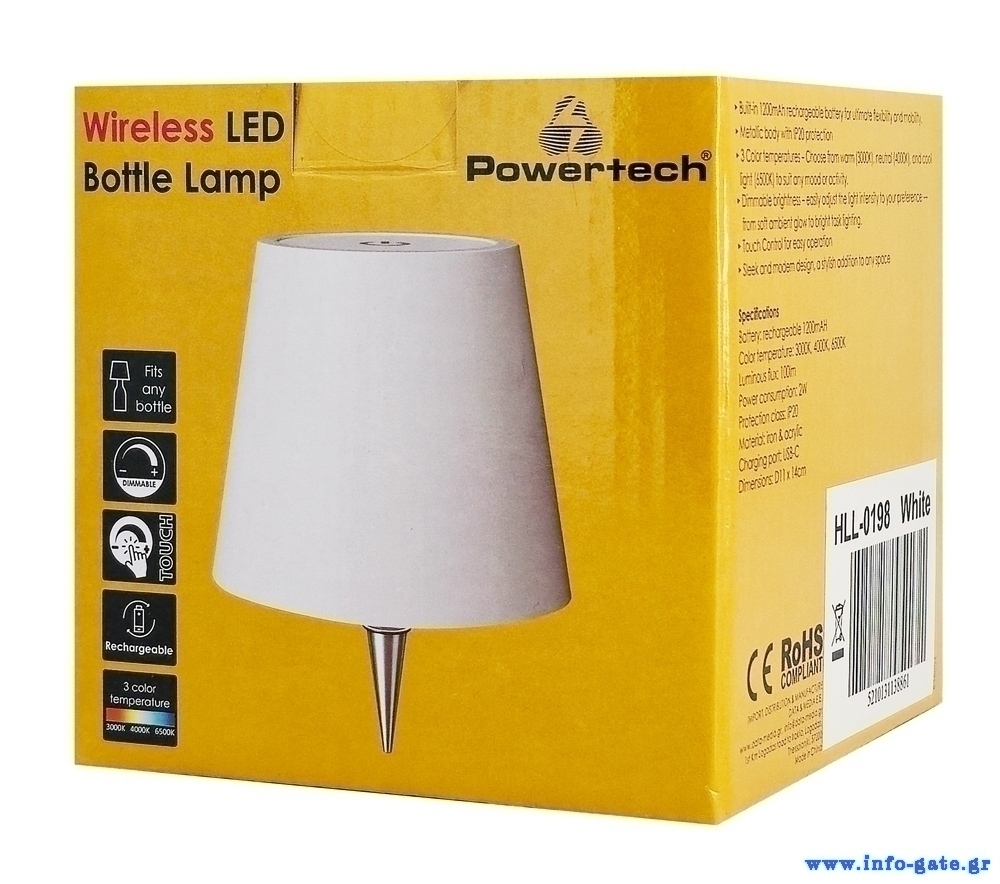 Με μοντέρνο, μινιμαλιστικό σχεδιασμό και ομοιόμορφο φωτισμό, το φωτιστικό της Powertech τοποθετείται στην οπή οποιουδήποτε μπουκαλιού, ομορφαίνοντας οποιοδήποτε δωμάτιο του σπιτιού σας.