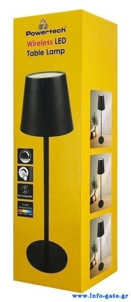 POWERTECH LED επιτραπέζιο φωτιστικό HLL-0193, ρυθμιζόμενο, επαναφορτιζόμενο, μαύρο