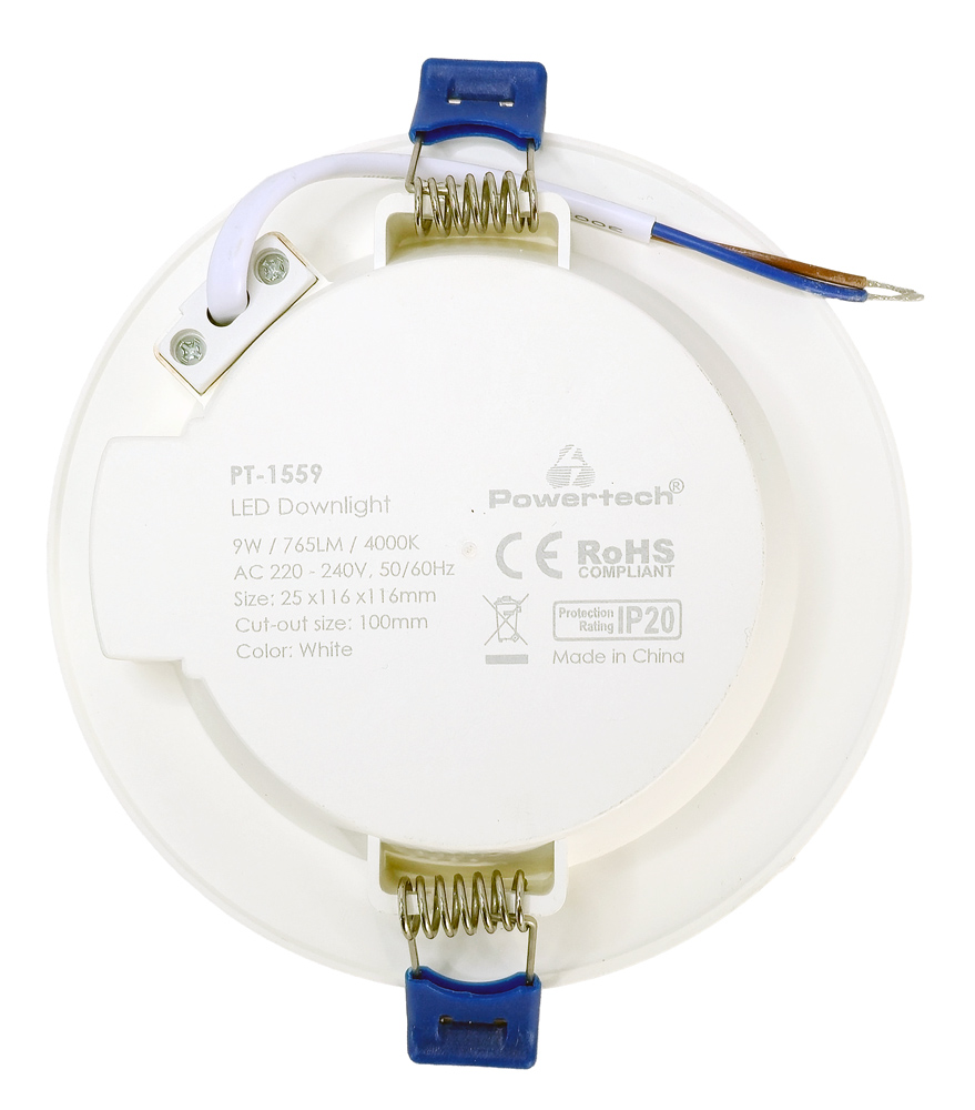 POWERTECH LED φωτιστικό downlight PT-1559, 9W, Φ116x25mm, 4000K, 765lm, λευκό