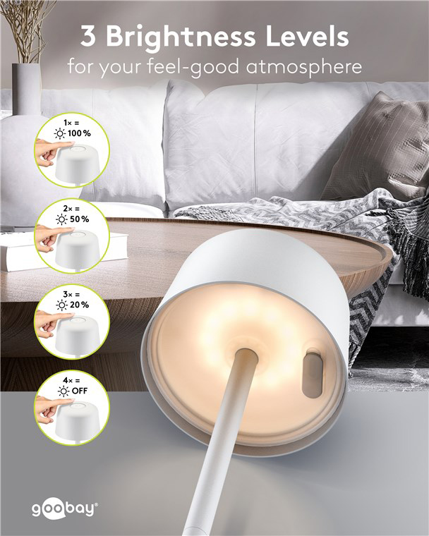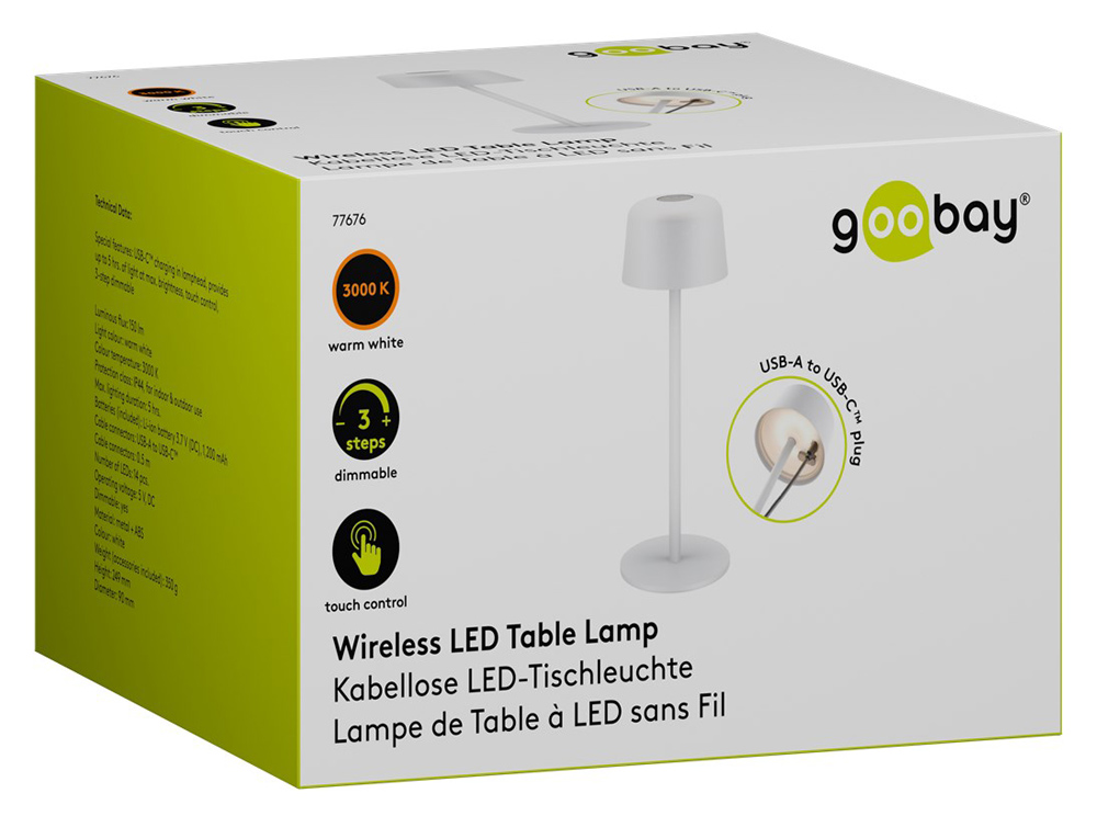 GOOBAY επιτραπέζιο φωτιστικό 77676, 3000K, dimmable, επαναφορτιζόμενο, λευκό