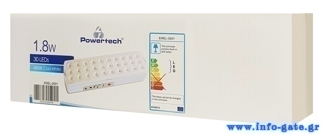 POWERTECH LED φωτιστικό εκτάκτου ανάγκης EMEL-0001, μπαταρία 1800mah, λευκό