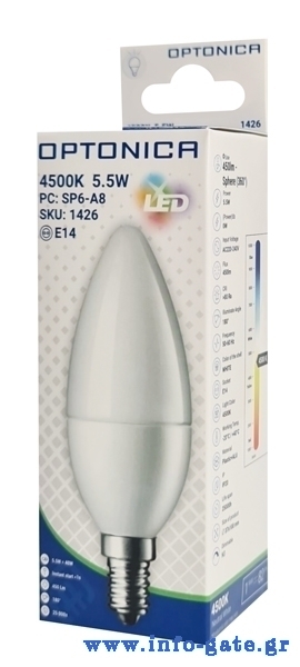 OPTONICA LED λάμπα candle C37 1426, 5,5W, 4500K, E14, 450lm